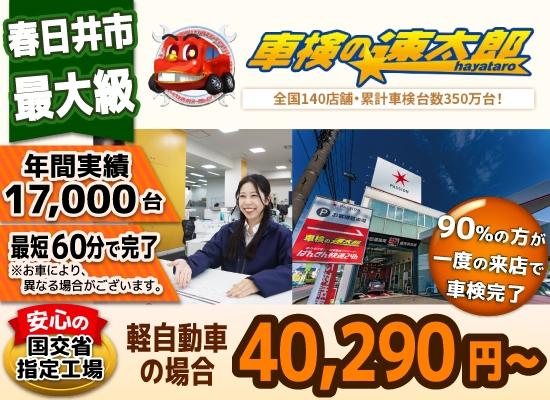 また「車検の速太郎」春日井店は、1店舗としての年間車検台数は日本一です!(車検の速太郎調べ)